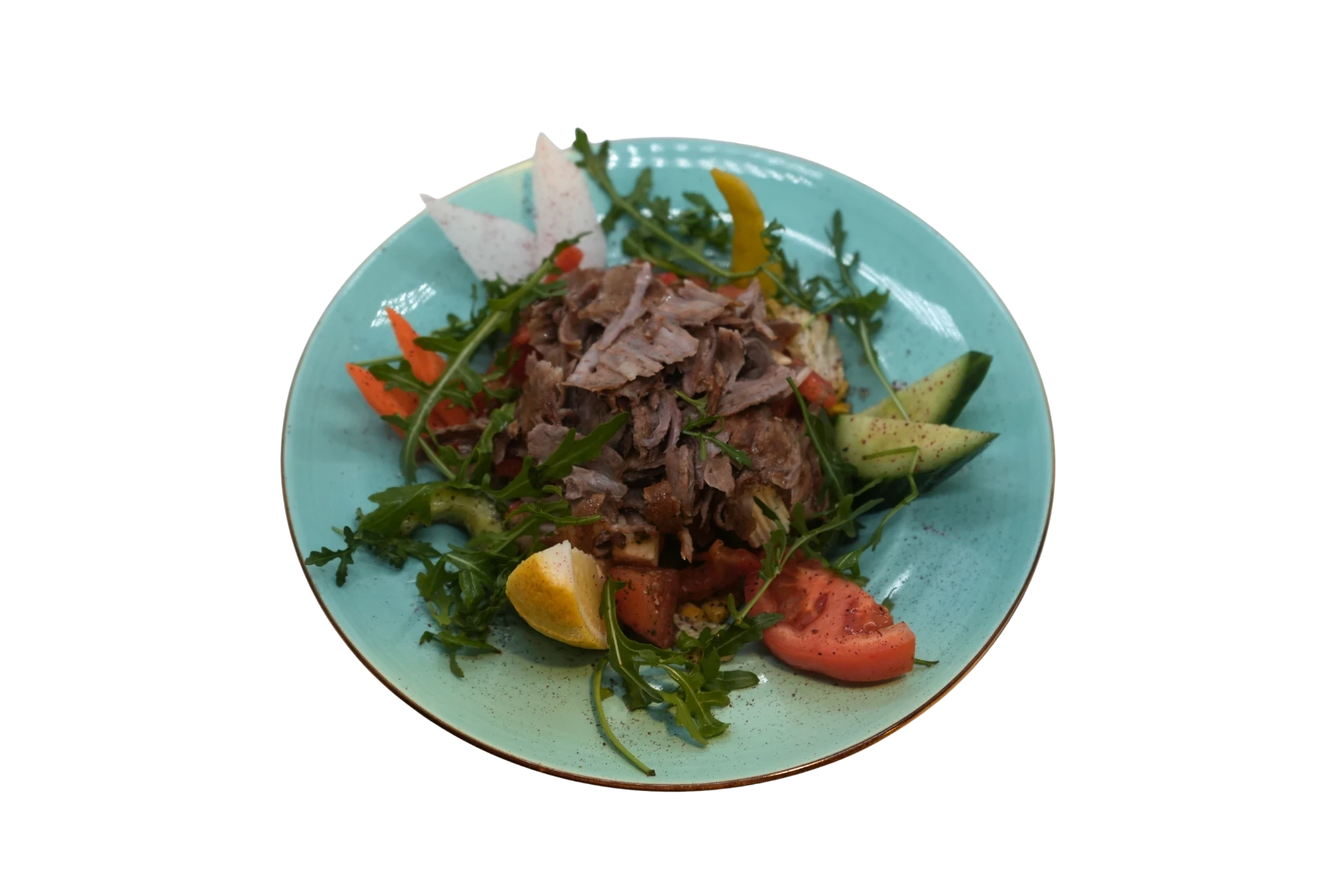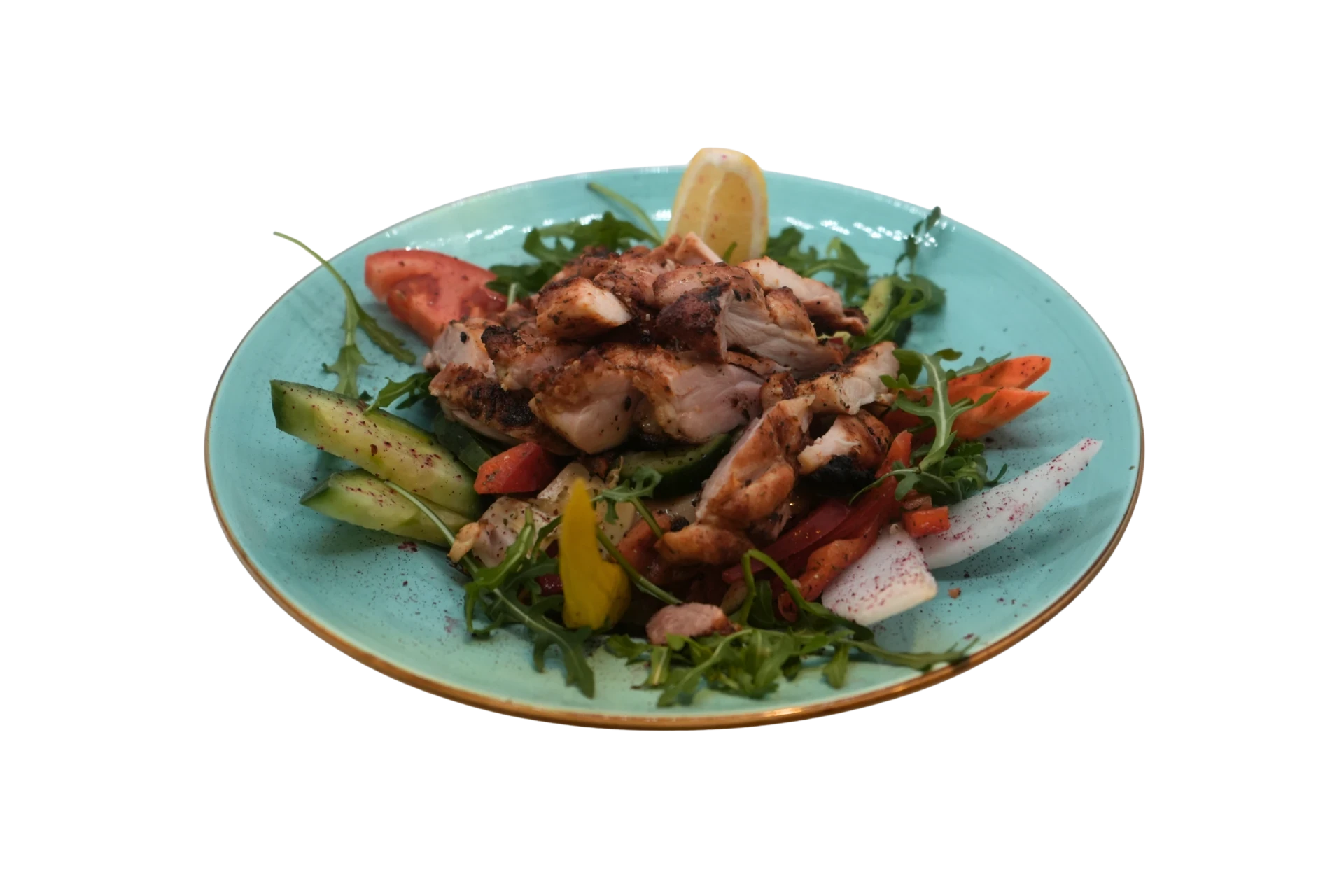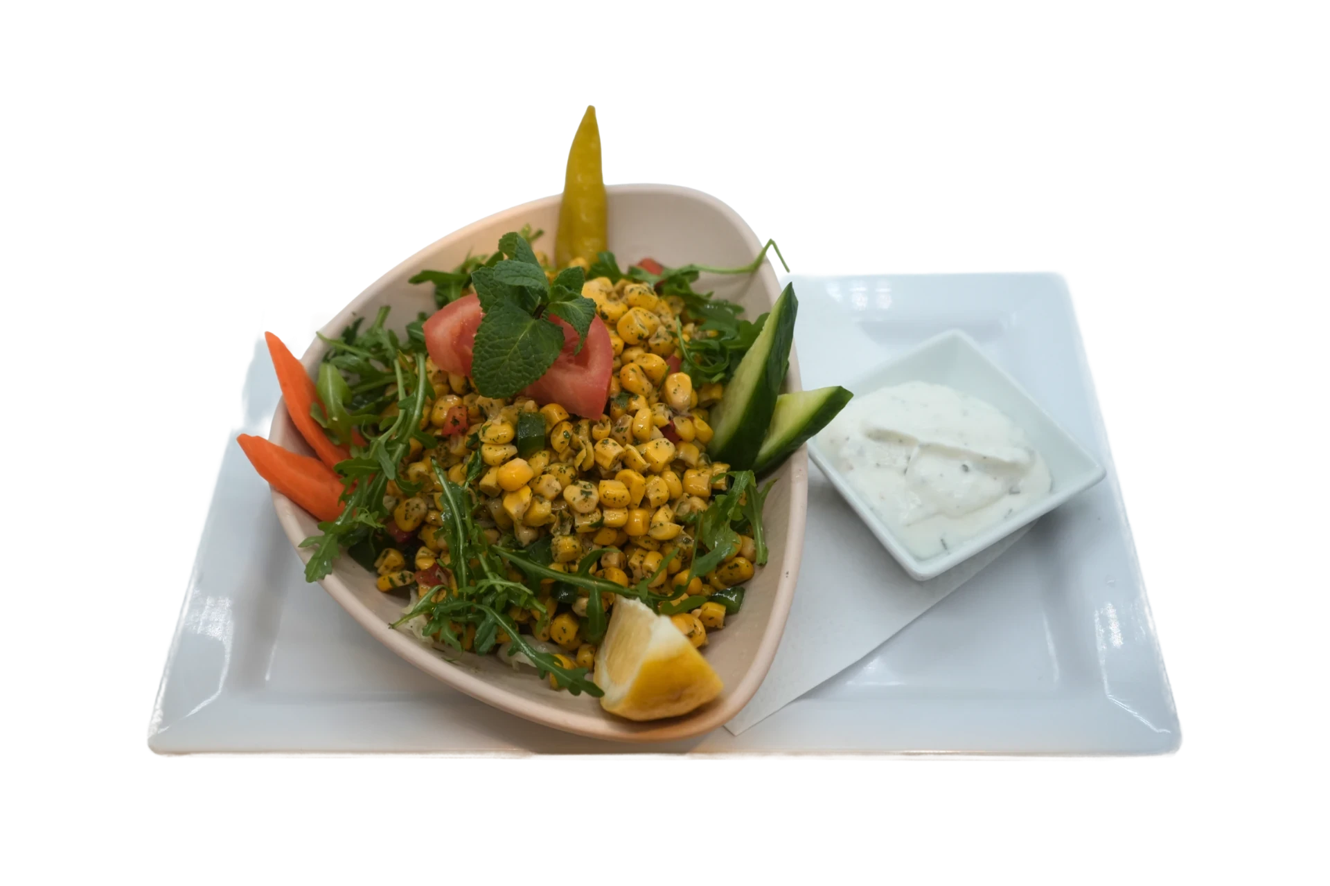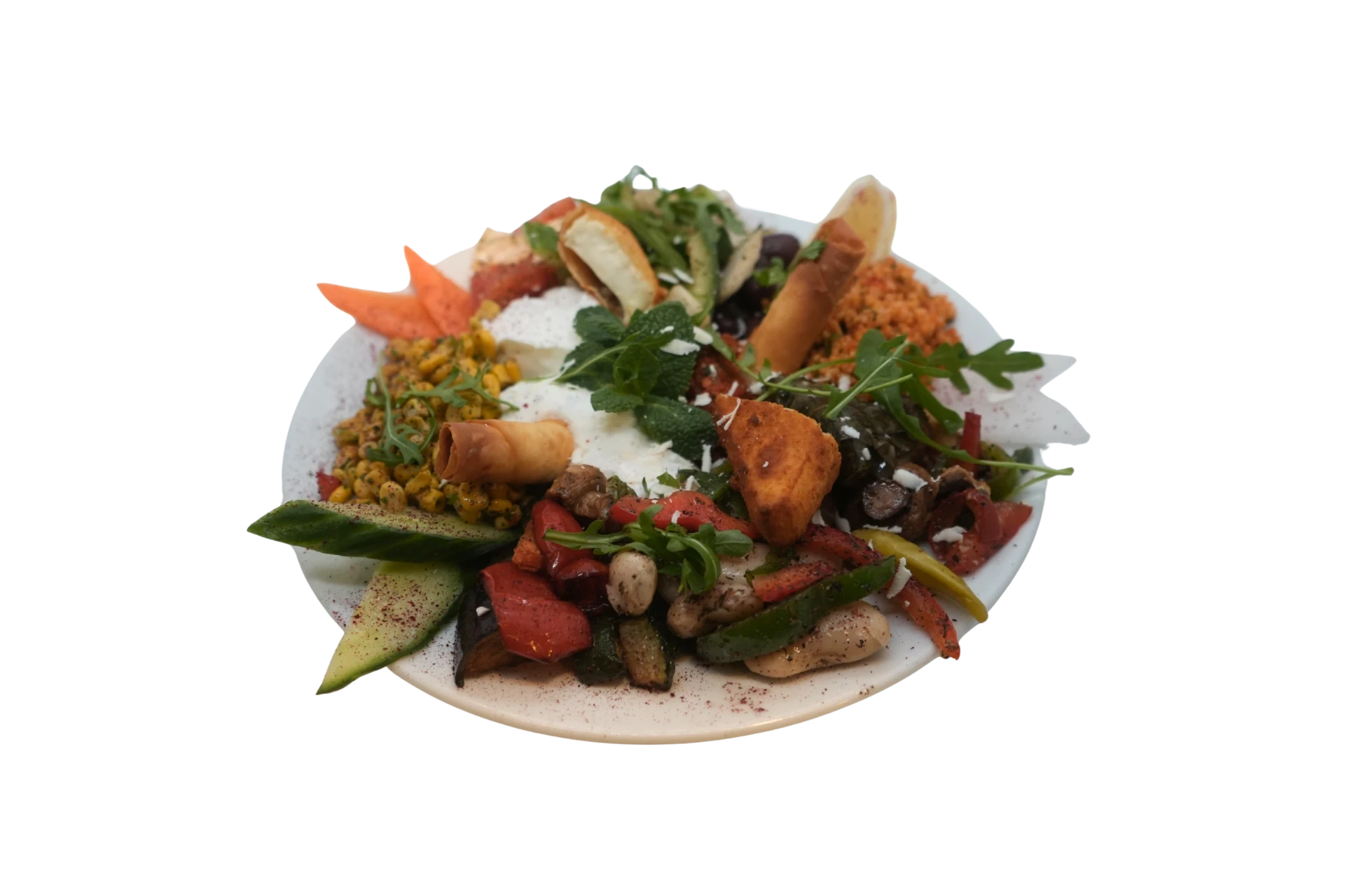 Halbe Lammfleischspieß, Lammkoteletts, Halbe Adana Kebab, Hähnchenfilet, kleine Lahmacun mit Reis oder Pommes und Salat